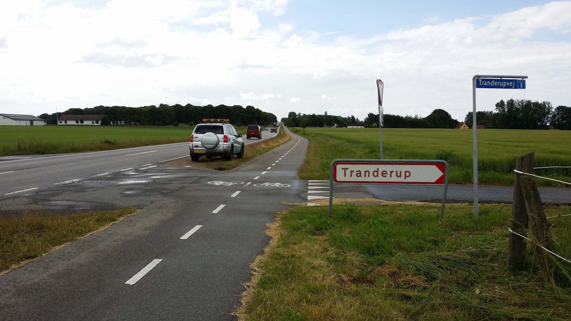 Tranderupvej er meget smal og betjener 8 ejendomme. Den er i princippet lukket men det er dog muligt at køre mod Dybkjær via privat parkeringsplads/gårdsplads.
