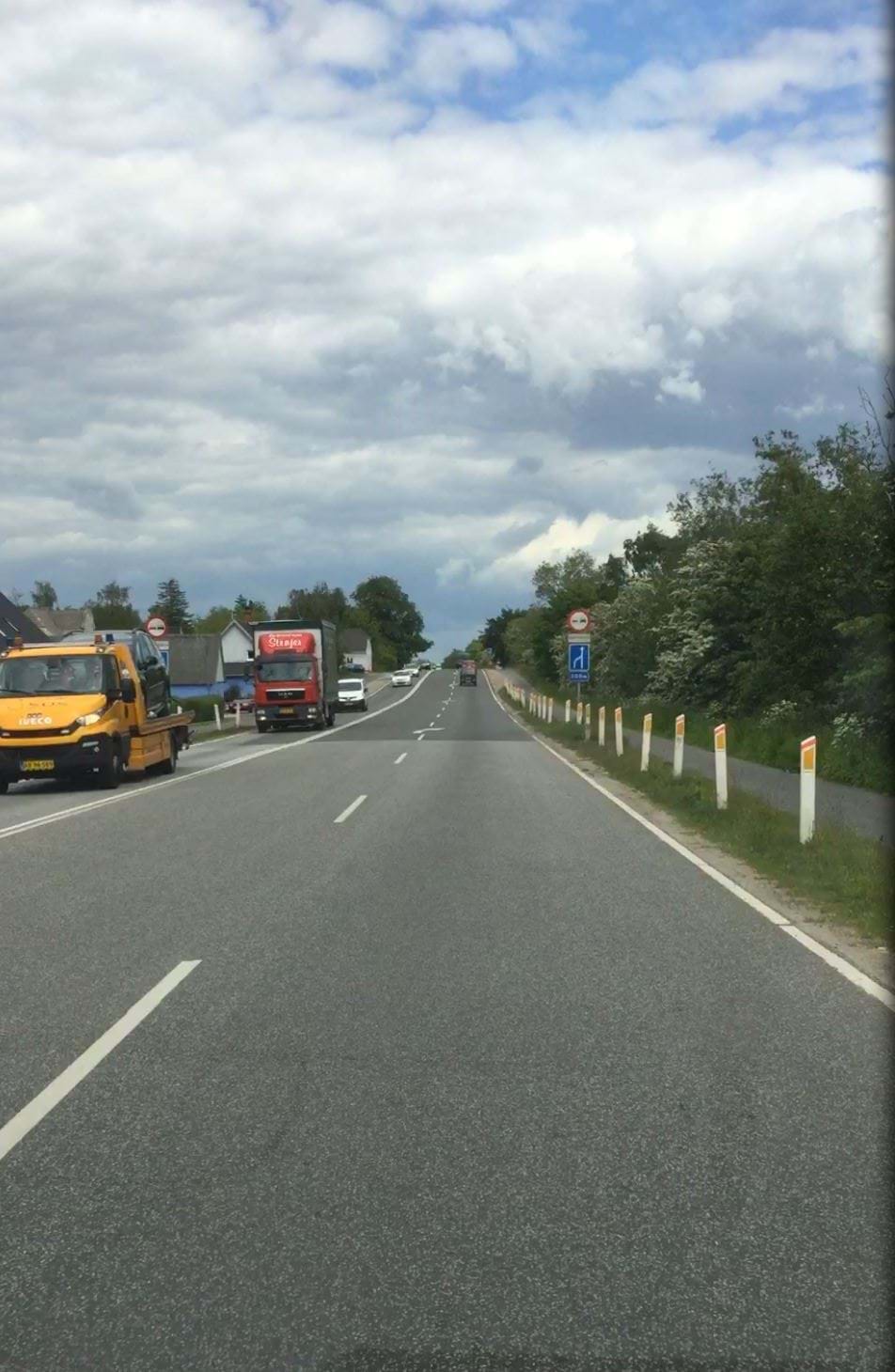 Advarselstavlen A20, risiko kø opsættes for den vestgående trafik fra motorvej og ind mod rundkørslen.